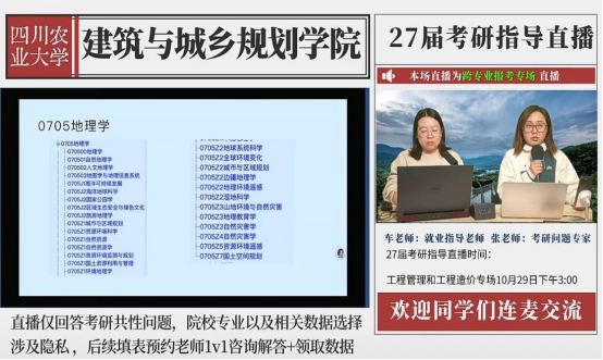 从去年首次尝试直播就业指导,针对2025届考研调剂、2026届就业指导、2027届考研指导系列直播陆续开展。直播内容涵盖考研择校、备考资料、调剂数据等方面,保证学生听得懂、了解深,向学生提供有效的考研大数据信息服务,为学生提供了精准有效的备考支持,打通了就业育人的高效沟通路径。